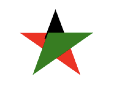 .div { margin: 50px 0; position: relative; width: 0; border-right: 100px solid transparent; border-bottom: 70px solid red; border-left: 100px solid transparent; transform: rotate(35deg) scale(.6); } .div::before { content: ''; position: absolute; border-bottom: 80px solid black; border-left: 30px solid transparent; border-right: 30px solid transparent; top: -45px; left: -65px; transform: rotate(-35deg); } .div::after { content: ''; position: absolute; top: 3px; left: -105px; border-right: 100px solid transparent; border-bottom: 70px solid green; border-left: 100px solid transparent; transform: rotate(-70deg); }